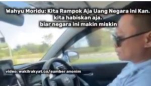 “Kita menuju Makassar menggunakan uang negara, kita rampok aja uang negara ini! Kita habiskan aja! Biar negara ini makin miskin! Siapa zi!? Wahyudin Moridu! Anggota DPRD Provinsi Gorontalo, nanti 2031 berenti uwti! Masih lama!”
